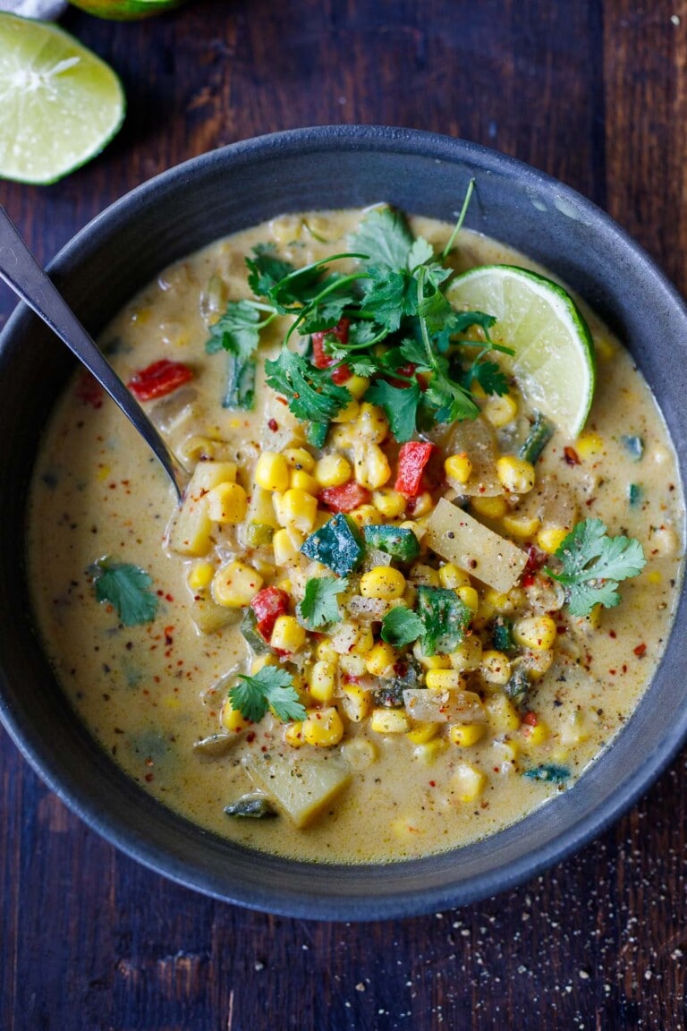This grilled corn salad recipe sings of summer! A fresh, healthy side dish that highlights fresh summer corn, creamy avocado, radishes, red onion, and fresh herbs, tossed in a simple, tangy lime dressing. Vegan and gluten-free.